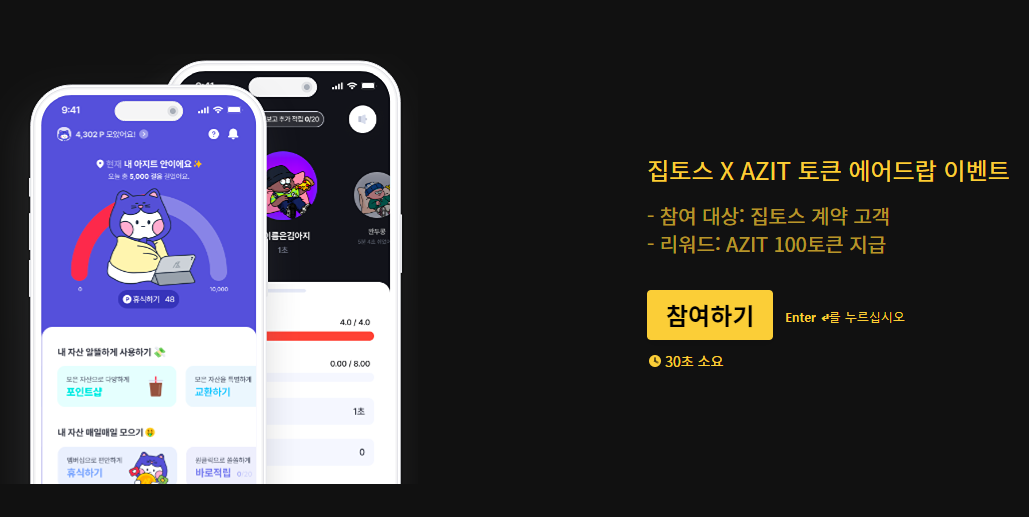 블록체인 기반의 부동산/주거 서비스 마일리지 포인트 통합 플랫폼 azit와의 파트너십 체결을 기념하여 고객님들을 위한 특별한 이벤트를 준비했습니다.